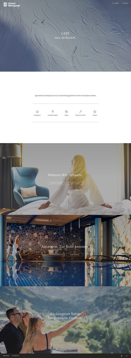 Für das Chalet Obergurgl haben wir eine Webseite geschaffen, die das außergewöhnliche Design und die Exklusivität der Unterkunft perfekt widerspiegelt. Mit einem klaren Fokus auf Ästhetik, Usability und modernem Webdesign haben wir gemeinsam mit Robert Len eine digitale Präsenz gestaltet, die den einzigartigen Charakter des Chalets hervorhebt. Jede Seite erzählt die Geschichte von alpiner Eleganz und luxuriösem Komfort – und sorgt dafür, dass das Chalet nicht nur vor Ort, sondern auch online einen bleibenden Eindruck hinterlässt.