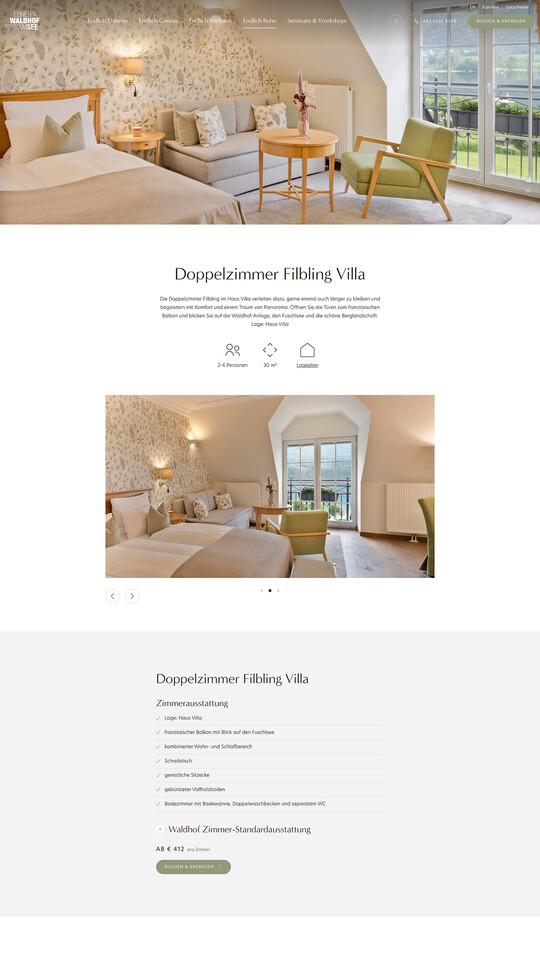 Das 4*S Hotel Waldhof Fuschlsee Resort ist uns ans Herz gewachsen, nicht zuletzt deshalb, da die Familie Ebner einer unserer langjährigsten Kunden ist. Seit Juli 2023 glänzt der Waldhof im neuen Webdesign. Das neue Bild- und Textkonzept spricht geradezu Bände und macht so richtig Lust auf Urlaub am türkisblauen Fuschlsee. Aber besser, Sie werfen vorerst einen Blick auf die neue Webseite und freuen sich mit uns über das gelungene Projekt, das den Charme des Hauses Seite für Seite spiegelt. Ganz unter dem Motto: ENDLICH DAHEIM.