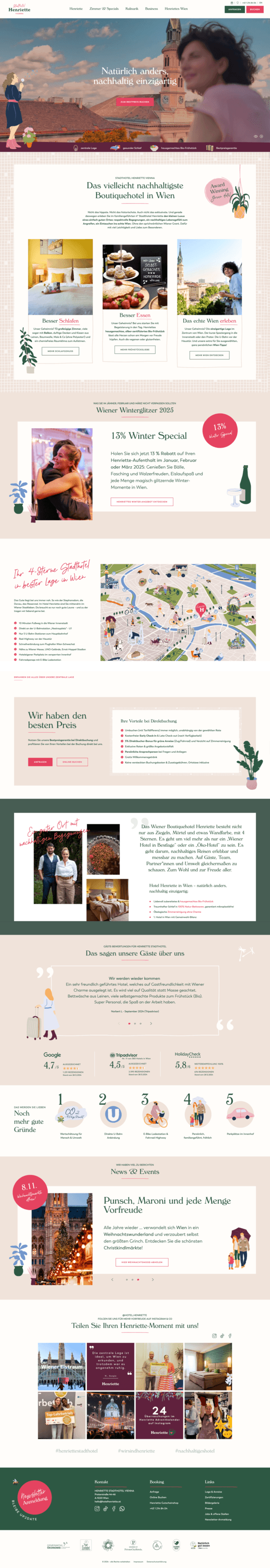 Ein Kunde, den wir lange kennen und für den wir (wieder) aktiv wurden. Das 4* Stadthotel Henriette war zuvor unter dem Namen "Das Capri" bekannt. Ein Generationenwechsel hauchte dem familiengeführten Hotel nicht nur einzigartiges Flair ein. Die Aufgabe? Neue Brand, neue Ausrichtung und ein neues Thema: Das Hotel Henriette ist das 1. Wiener Hotel nach Gemeinwohl-Ökonomie!