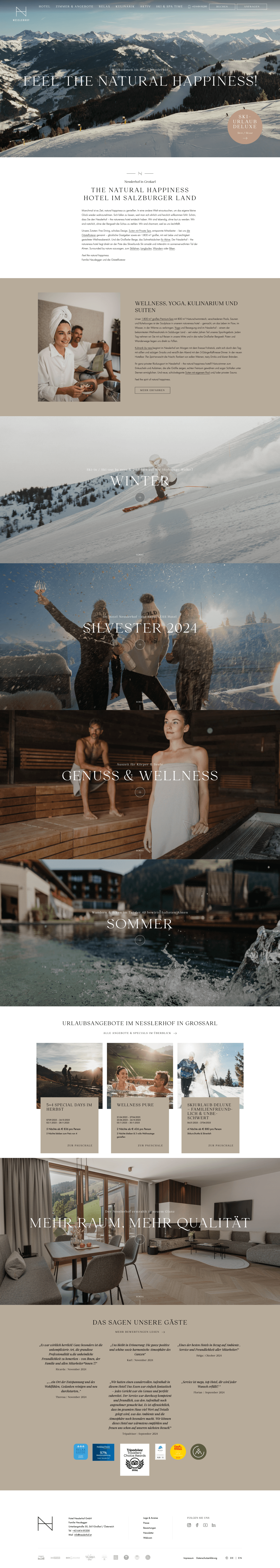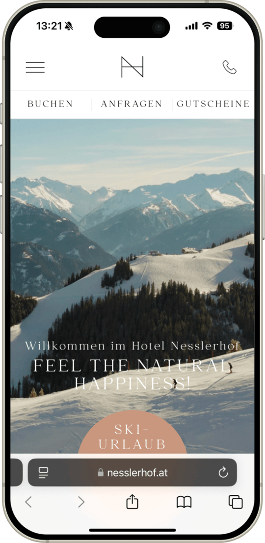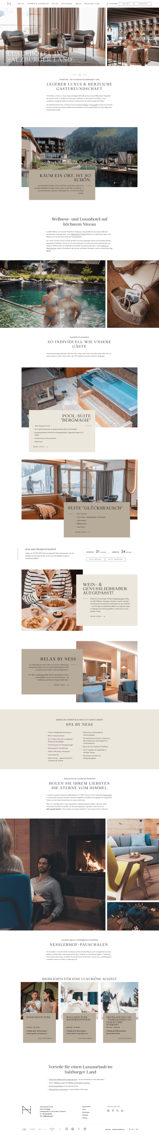 Das Hotel Nesslerhof, die Heimat der Gästeflüster, erhielt als starke Marke eine besonders eindrucksvolle digitale Präsentation. Der Relaunch der Webseite des Nesslerhofs – den wir übrigens schon betreut haben, als das Hotel noch gar nicht gebaut war – transportiert das Markenkonzept des Hauses in einem imagelastigen Aufbau, der dem ausdrucksstarken Bildmaterial des Hauses viel Raum gibt. Der moderne Look der Webseite wird durch eine markante Textgestaltung unterstrichen und bringt User durch eine intuitive, stets präsente und dennoch unaufdringliche Buchungs- und Anfragefunktion nahtlos zur Conversion.