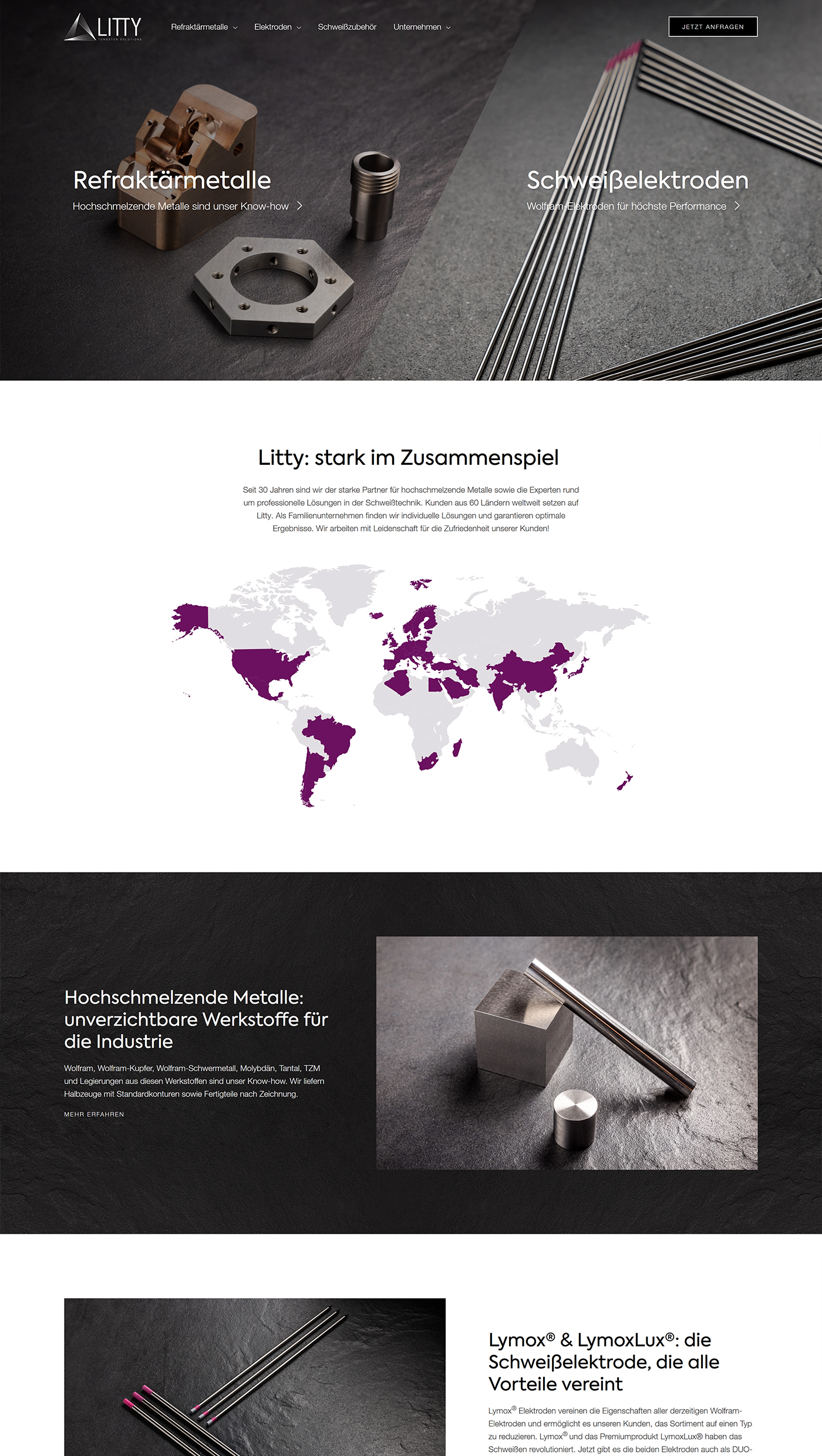 Ohne Tungsten gäbe es keine Höchstleistungen in der Raumfahrt, keine Abschirmungen gegen Röntgenstrahlen oder Dinge, die den Alltag selbstverständlich machen. Diesem spannenden Feld haben wir uns mit viel Elan gewidmet: von der Recherche über die Textierung – von der SEO-Begleitung bis zur Programmierung. Weil das stärkste aller Metalle einen starken Web-Auftritt braucht, erstrahlt Litty in starkem Design. gesagt.getan.