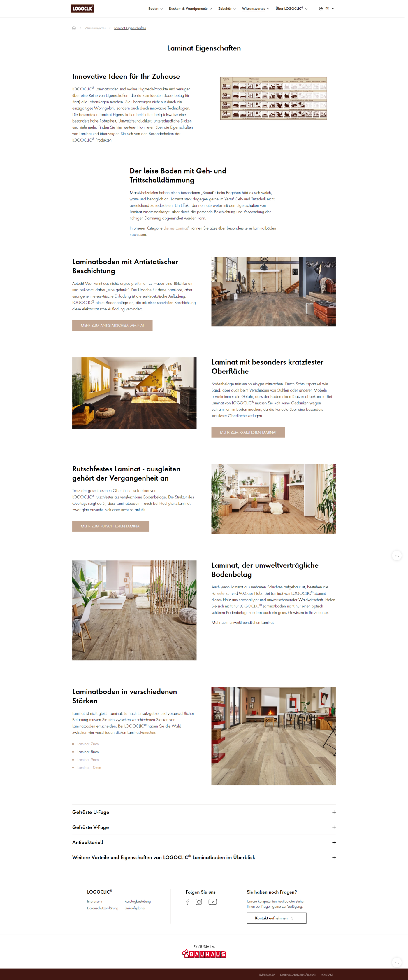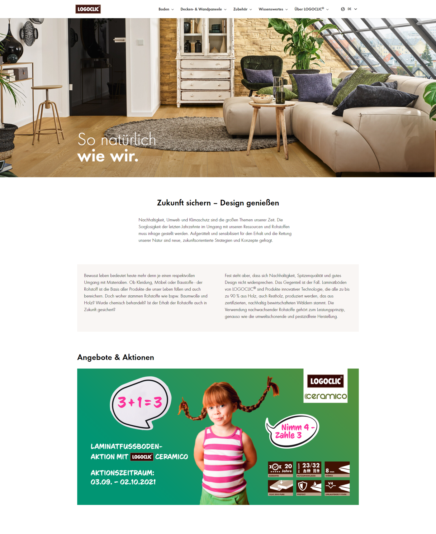 Wer Laminat sagt, muss auch Logoclic sagen: Die Markenwebseite des Fußbodenherstellers stellt Informationen, Anleitungen und Antworten zum Thema Laminat in insgesamt 8 Sprachen zur Verfügung. Neben einer repräsentativen Sortimentspräsentation verhelfen ein Einkaufsplaner und ein ausgedehnter Laminat-Berater mit FAQ-Bereich zur richtigen Boden-Wahl. Intuitiv verständliche Verlegeanleitungen, Zubehör-Guides und ein treffsicherer Filialfinder unterstützen Logoclic-Kunden von der Kaufentscheidung bis zum perfekten Wohngefühl. Wer Inspiration sucht und sich Tipps für die perfekte Bodenpflege wünscht, wird in den markeneigenen und von uns mit Inhalten versorgten Social Media-Kanälen auf dem Laufenden gehalten.